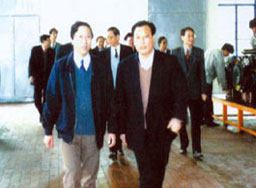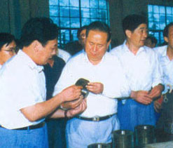 梁省長(前左一)在董事長陪同下視察企業(yè)  原副省長俞興德到生產(chǎn)車間視察工作